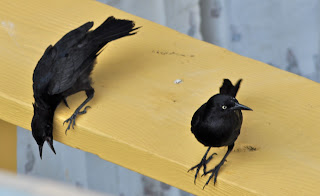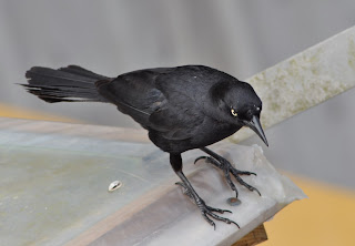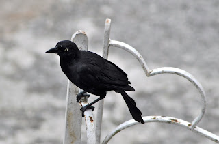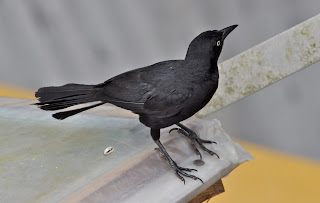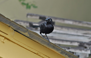 Qué: “Hey, what’s that bird over there?” “Which one?” “That one that kinda looks like a Grackle?” “Oh, se llama ‘Pichón Prieto’ o… sí, un Grackle!” That was the conversation I was having in Spanglish on one of my first days in Adjuntas, Puerto Rico (actually, the conversation was in even more Spanish than above, but I figured it would make a little more sense for readers this way…). So, the medium-sized noisy black bird with a distinctly yellow eye was in fact the Greater Antillean Grackle (Quiscalus niger). Even though I am about 3,000 miles south of where I live in Burlington, I am still greeted every morning by the ceaseless cackling of these gregarious birds. Only this time I am serenaded (maybe not quite the right verb) by flocks of the southern cousin of Quiscalus quiscula, about which Teage has been blogging so much recently. Even though I am in the Caribbean, known for the more sexy and showy specimens like the Puerto Rican Tody or Parrot, these Grackles immediately provided me with a connection to my home in the north, and I am now fond of them.