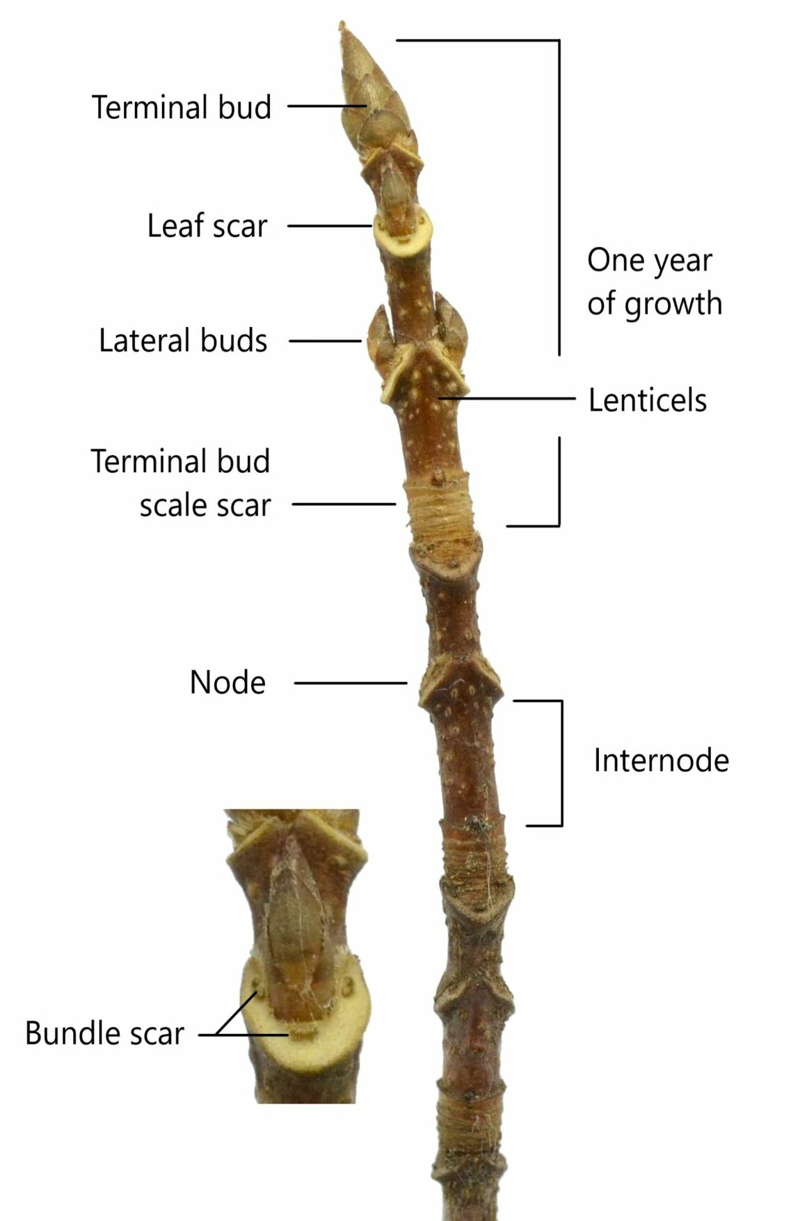 Below you’ll find descriptions of the various anatomical features of a twig as well descriptions of the variation in twigs.