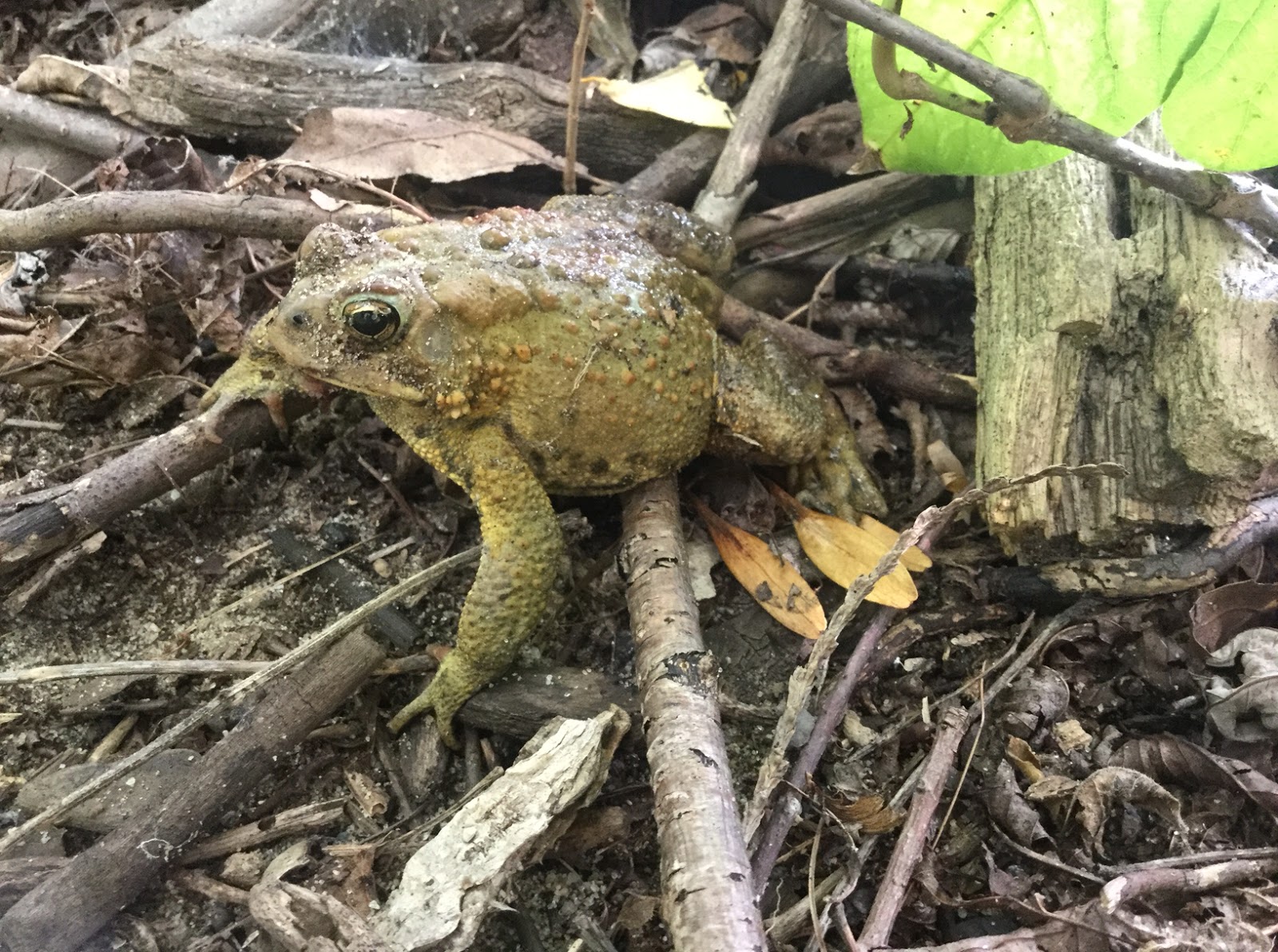 | A yellow jacket showed up and curiously buzzed around the toad for a while |