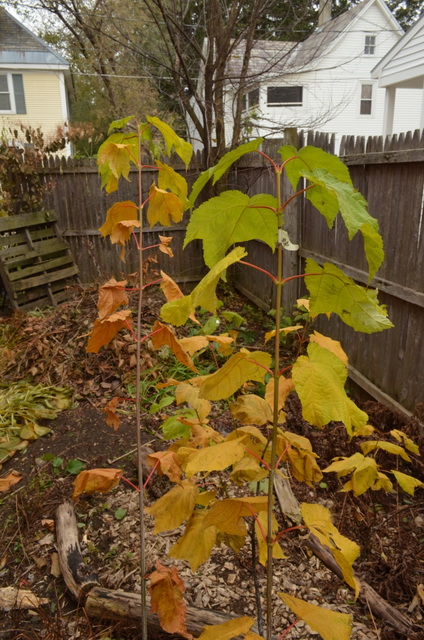 Anyways, I’ve started various projects in the past, but this one will be easy – each year around Nov 1 (even marked it on my calendar) I’ll take a quick photo of the striped maple to track its growth and branching pattern. I guess I probably should have put the marker just below the terminal bud, but below the first set of lateral buds will do. The other thing that will be neat to see is how the tape affects the color of the bark. Striped maple has photosynthetic bark, and my assumption is that it will drop its chlorophyll content and shift to a deeper red/purple color (as the older bark is). Though the tape isn’t totally opaque, so we’ll see about that too.