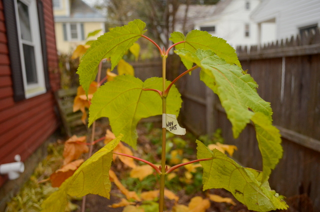Looking out my window at the striped maple Sam & I transplanted last year made me want to start a long-term documentation project. The shrub caught my attention because it seems to be turning colors from the top down; this is the opposite of virtually everything else, which tends to turn from the top and outside working in and down. Maybe being a small shrub with a single stem of leaves makes this pattern so different? Maybe being in super low light conditions?