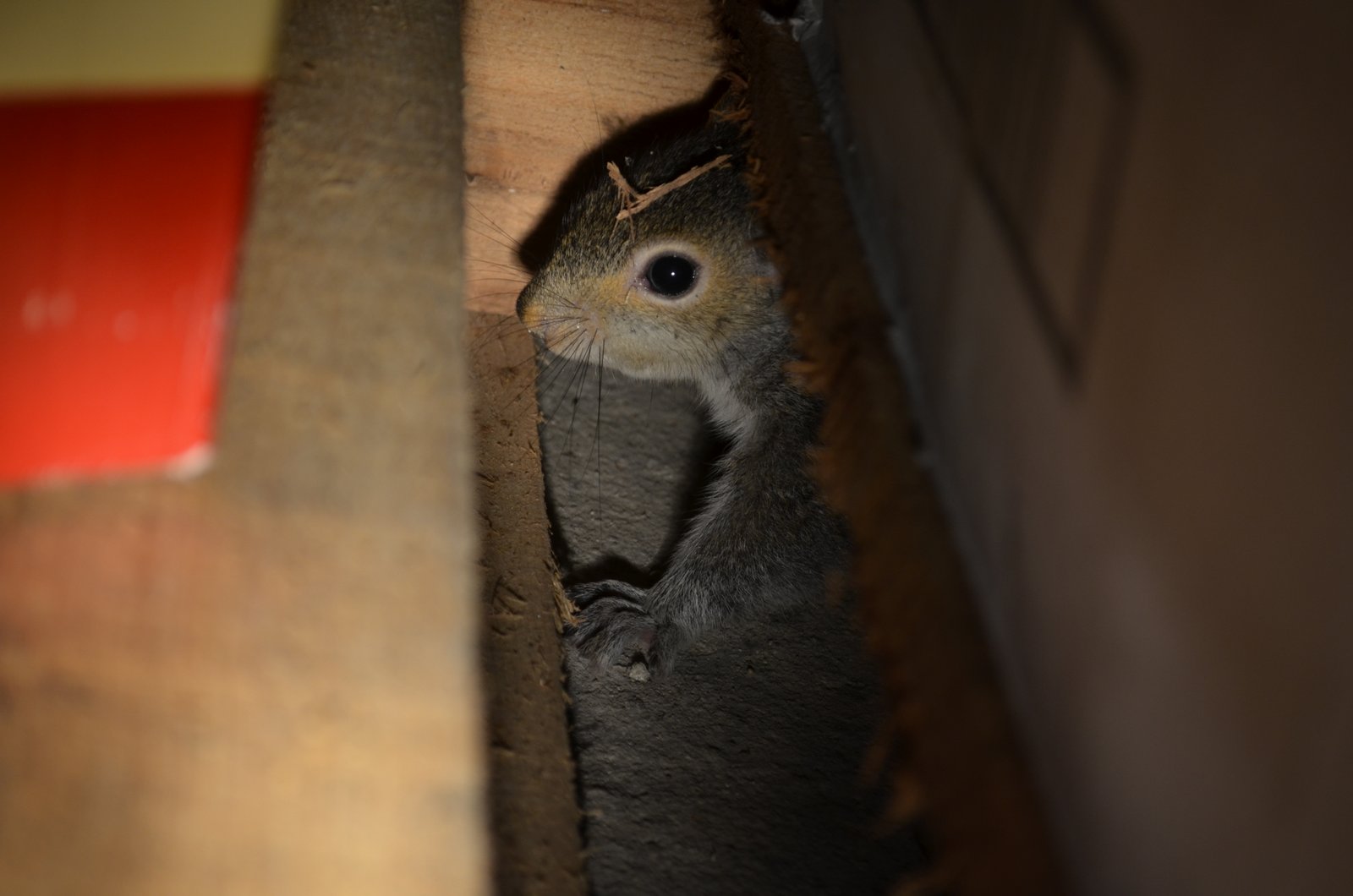 What: My neighbor has a squirrel problem that I was happy to help with. She replaced the insulation on her chimney a couple weeks ago and thought that she had taken care of the problem, but apparently she was mistaken. On Friday I helped her chase out one of the squirrels. It turns out there were three more (much much smaller) gray squirrels still in the basement. I sealed a hole in the chimney, and coerced a couple into boxes then relocated them outside. The last young one definitely proved the most difficult. We set a havahart and baited with peanut butter, to no avail. Saturday morning a friend and I went into the basement and tried to catch the squirrel. It cornered itself in a stack of winter tires. It was growling pretty fiercely, but we managed to wrap the tire in a cover for the grill and then carry the whole thing outside. The video is the Great Releasing of the Squirrel. It was pretty much spring loaded and disappeared off along the fence line in a few short seconds.