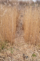 The “dam” is really just an outlet flow structure for the detention pond. You can see the open water channel running on the upper left corner where the beavers move back and forth from their lodge to the dam to do maintenance work. They maintain holes throughout the winter, or at least try to. I’m not sure the exact reason, but I would assume it has something to do with keeping an escape route in a dire emergence and also having access to land if their food cache runs low mid-winter. It might also allow them to access early spring vegetation even if their pond hasn’t frozen over.