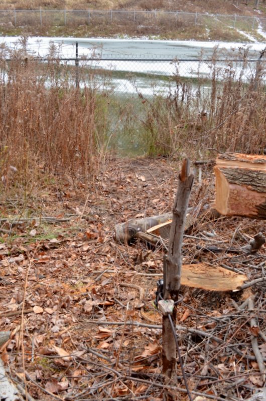 What: Sam and I went out last Tuesday afternoon (11/27) to set up the game cam. They’ve got a number of trails that run under the fence around the retention pond that they’ve used so we decided to stash some aspen on the uphill side of the fence and put the game cam facing the water on the downhill side so we could get video of them dragging the branches back to the water.