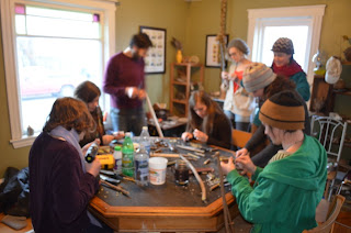| Embarassingly out of focus shot of the ESS group carving their own sumac/elderberry spiles |