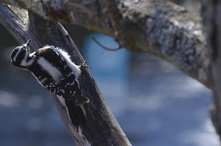 What: These are a couple of shots of the female hairy woodpecker. For notes on the difference between this little gal and the very very similar looking downy woodpecker, see yesterday’s posting. In short (or long), the hairy woodpecker’s bill is considerable bigger relative to body size.