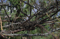 Larch branches seem to break quite readily. In fact the whole tree has this appearance of someone who barely made it out of bed. Snapped branches litter the lower limbs, latent buds burst from every fissure on the bark, the bark turns a dead scraggly gray and flakes readily, and the new growth is a sickly grayish white. Yet it maintains it’s own elegance (though certainly, at least to me, this peaks in the fall when it, unique among conifers, drops its needles. And so the crows’ shabby little nest blended in perfectly with the dishelved backdrop. But again my mind wandered to the wind. On the edge the trees were like sails, and would be worse once the leaves fully emerged. Crows obviously don’t get motion sickness. But imagine the nestlings – in a nest that barely has sides to it – perched up there in a good wind storm.