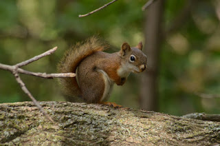 | Beta red squirrel approaching the alpha’s territory |
