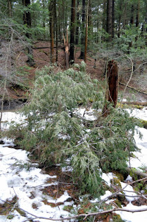 Where: Hemlocks grow at extremes – there are hemlock swamps and there are steep rocky hemlock slopes. It can grow in the shadiest of places, less than about 10% light. This tree was growing along Wool Pullery Brook in Centennial Woods.