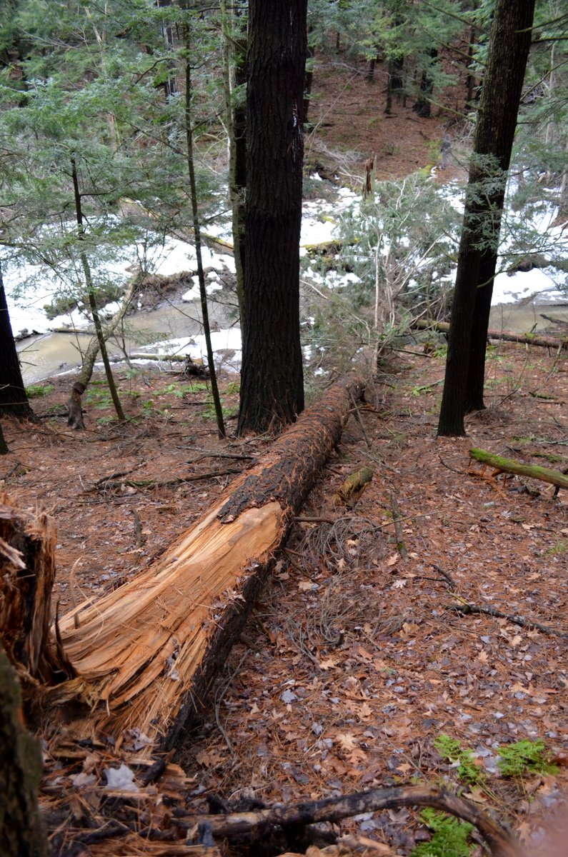 Where: Hemlocks grow at extremes – there are hemlock swamps and there are steep rocky hemlock slopes. It can grow in the shadiest of places, less than about 10% light. This tree was growing along Wool Pullery Brook in Centennial Woods.