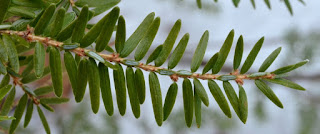 Hemlocks would risk desiccation (severe drying) in the leaves unless it could somehow protect itself from the ways it loses water. It does this in a couple of ways. First, it has a super waxy cuticle. The waxy cuticle prevents transpiration from occurring on the top side of the leaf. Second, it protects the stomata (those openings) from being exposed to the wind by putting them on the underside of the leaf and having them in grooves.