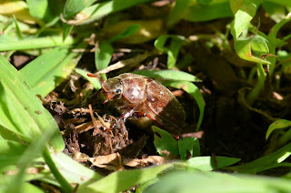 What: Just in time for the end of June, I heard this June bug (Polyphylla sp., poly = many + phylla = leaf referring to the many “leaves” that fork out at the tips of its antennae) before I spotted it. I finally found it tucked into the ground, head up, butt half in. When I rediscovered the same individual it was again nearly vertical, but this time more submerged with its abdomen in the ground and head barely above. The beetle itself is rather large, about an inch long and almost half that around. Its elytra (hard coverings beetles have over wings) were a dullish brown with irregular speckling that seemed more from wear and tear than genetic programming. When it made its noise, it sounded more like a wounded baby mouse than an insect. It made the sound in response to my footsteps and when provoked (i.e. poked with a blade of grass) it repeated the noise. Seems like an odd defense, and made me wonder what other defenses it had to back up the aggressive noise. A little research unearthed some anecdotes of pets going after these large insects then requiring vet visits for swollen faces. So the sound must be some sort of deterrent rather than mate attractant.