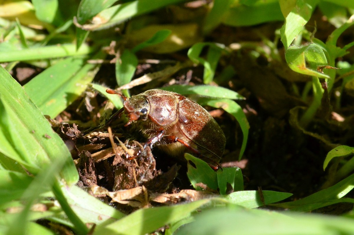 Ecological notes: Males have very robust enlarged feathers on their antennae for picking up whifs of the female pheromones. This one, with much smaller antennae was most certainly a female. Most of the beetle’s life cycle is spent underground as large white larvae with yellowish to orange heads – hard to miss. The females lay their eggs in the soil, which makes me wonder if the defensive posturing of the female was her actually defending her egg-laying territory from an intruder (me).
