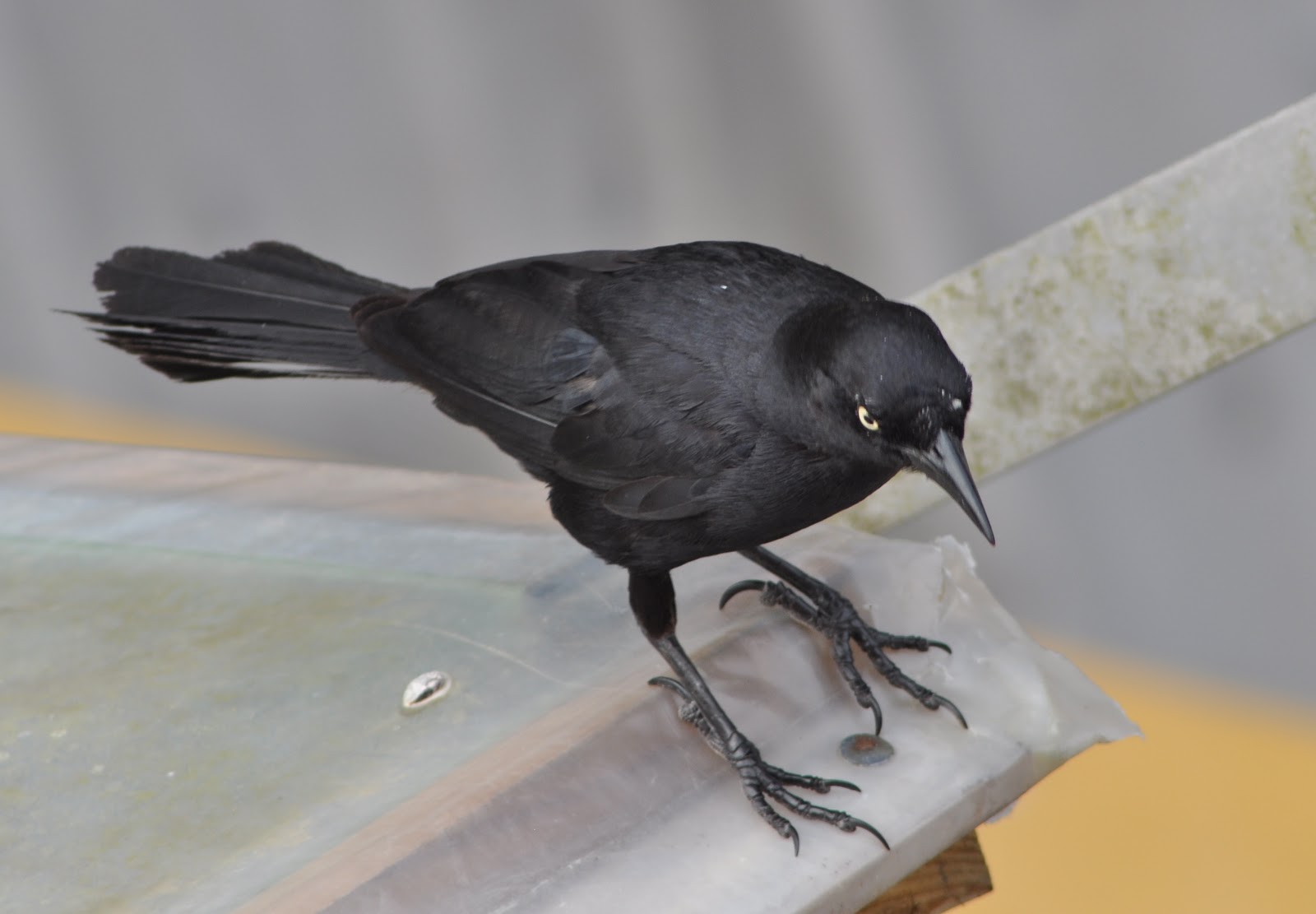 Qué: “Hey, what’s that bird over there?” “Which one?” “That one that kinda looks like a Grackle?” “Oh, se llama ‘Pichón Prieto’ o… sí, un Grackle!” That was the conversation I was having in Spanglish on one of my first days in Adjuntas, Puerto Rico (actually, the conversation was in even more Spanish than above, but I figured it would make a little more sense for readers this way…). So, the medium-sized noisy black bird with a distinctly yellow eye was in fact the Greater Antillean Grackle (Quiscalus niger). Even though I am about 3,000 miles south of where I live in Burlington, I am still greeted every morning by the ceaseless cackling of these gregarious birds. Only this time I am serenaded (maybe not quite the right verb) by flocks of the southern cousin of Quiscalus quiscula, about which Teage has been blogging so much recently. Even though I am in the Caribbean, known for the more sexy and showy specimens like the Puerto Rican Tody or Parrot, these Grackles immediately provided me with a connection to my home in the north, and I am now fond of them.