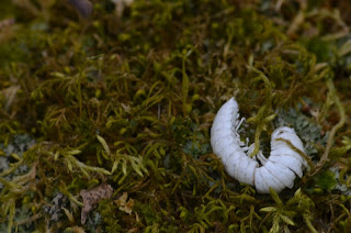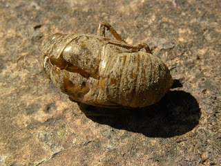What: At Crow’s Path a couple of weeks ago, Lauren and one of the kids discovered a cemetery of millipede exoskeletons. The big question was whether or not they were sheds or if all of the animals had died. There wasn’t any sign of cracking along the back (as in the cicada molt below), so my suspicion is that there was a big flush of them and they died. Polydesmida millipedes typically have very small home ranges and so are locally concentrated, which may explain why we found sooo many in one small outcropping (http://www.polydesmida.info/polydesmida/).