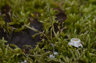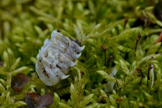 The top image shows gives a clear view of the full body of the millipede. There are 20 countable body segments. This is apparently diagnostic for members of the Polydesmida family, which all have between 18 and 22 segments. Because the colors had all been bleached away by time, it would be hard to identify down to species. The family gets its common name, flat-backed millipedes, from the lateral blade-like ridges, called paranota, poking out from the sides (apparent in photo at bottom of posting).
