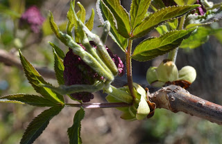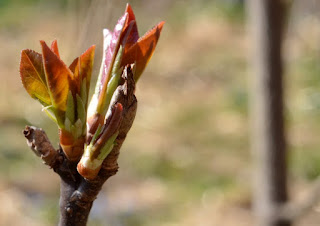 Other notes: Already I’ve seen blossoms on red elderberries (at Red Rocks in South Burlington). My ornamental elderberries (Sambucus canadensis) haven’t put out flowers yet and the emerging leaves do not have the same reddish tinge to them as the wild ones do. The red is caused by the same pigments that make the leaves red in the fall (non-photosynthetic vacuolar pigments called anthocyanins). It’s possible that these require little energy investment chlorophyll takes lots of energy to produce) and the plant can produce the structural part of leaves initially and then chlorophyll once the fear of frost is reduced.