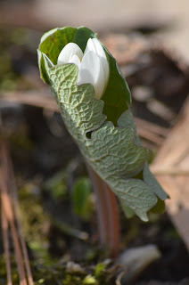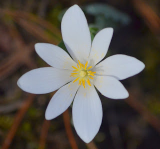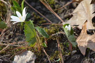 What: Look for bloodroot in hardwood forests enriched by calcium-rich bedrock. The flowers are variable, but generally have 8 petals, and can have up to 20 or so, though I usually see them in the 8-10 range.