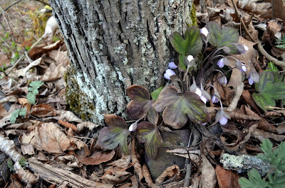 What: The most fascinating thing for me about hepatica is that as it comes up some of the leaves don’t quite make it above the leaf-litter, or make it just part way. Where the leaves are exposed to the sun they are a dark purple, while the shaded parts are a bright green.