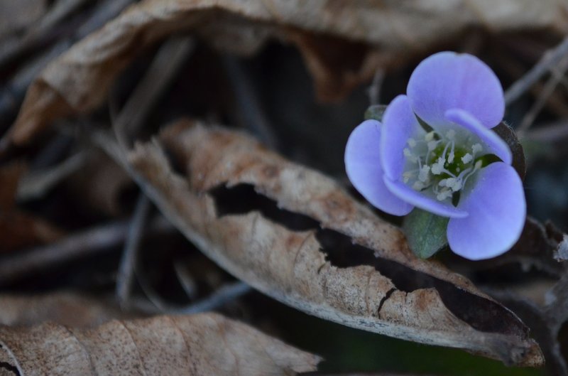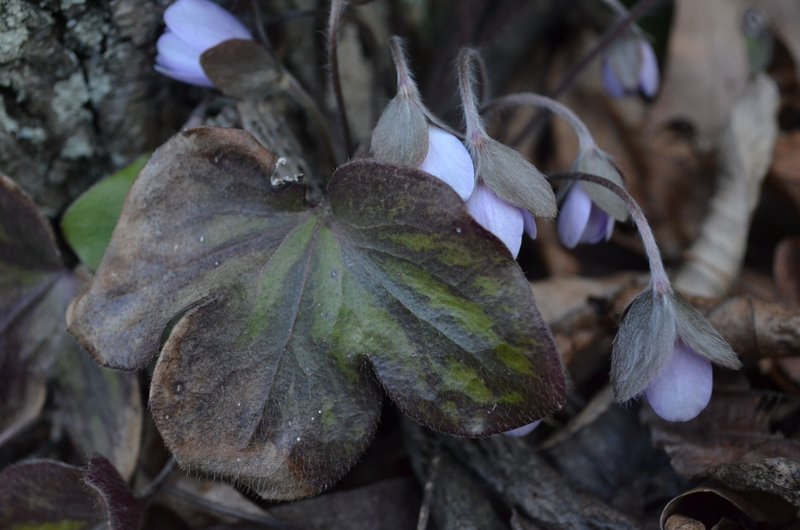What: The most fascinating thing for me about hepatica is that as it comes up some of the leaves don’t quite make it above the leaf-litter, or make it just part way. Where the leaves are exposed to the sun they are a dark purple, while the shaded parts are a bright green.
