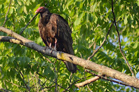 Ecological notes: I was particularly fascinated with the enormity and odd grace of the committee of turkey vultures that seemed to defy my cultural expectations of what a vulture should be (on Friday I’ll post more about collective nouns, like committee, for animals). Wednesday evening I came to a fork in the river where it split around an island. I saw a turkey vulture circling low on the south stretch of the island and so I set down that direction. As I slowly approached, another turkey vulture landed on a gravel spit about a quarter mile down from me, followed shortly by three more. I tied up my boat and crept slowly along the shore line to get a better view. As I rounded the bend I was treated with a spectacular view of about 25 turkey vultures either sunning themselves on the rocks or perched up in the trees preening themselves.