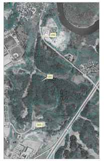 After doing some investigating, I ended up in the Map room of UVM’s library. There, I met with local map guru, Bill Gill. I asked him if he knew about these old markers in Centennial. He said no but that he does know a good deal of information about sea level elevation and topography so we sat down at a computer to look at some GIS mapping software. Using this program, Bill put together the image below to illustrate the topography of Centennial Woods. We honed in on Centennial Woods to look at this topographic overlay with a contour interval of two feet. Bill, being extremely proficient at GIS, picked out some key points to focus on. The point nearest the bottom of the image below is the start of the stream that runs through CW. Bill guessed that this is where the highest point is in CW at 308 feet above sea level. The uppermost point on the map at 206 feet above sea level indicates the lowest elevation downstream in CW while the middle point at 280 feet above sea level is a good reference point for the center of the woods. Where: Centennial Woods