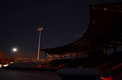 I may be wrong on some of this so feel free to fact check me (just no using books). Nate (aka Gull, aka woodsmen drums smith) and I were just talking about the difference between smartphone apps like Moon Phase or websites like the moonrise finder and using primary experience to find things out. I think it’s in the moments between finding the answers that are so important, like hearing the steel girders of the baseball stadium awning creak and groan and rumble like the belly of a ship as the temperature dropped (just as I could watch the moon move, I could almost feel the temperature drop from 2oF @ 7pm to -5oF at midnight). Using an app I would have missed the shooting stars blazing streaks across the sky. Perhaps in the end the information gleaned is the same, but the process is entirely different and I greatly prefer the long road, which is always home to many many divergent paths.