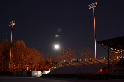 What: As a follow up to my last post, I wanted to post about why the moon cycles at all from new to quarter to full and back to new in 28 days. To get a sense of this myself I went out to Centennial Field the past three nights at 10pm, 11pm, and 12am to take photos. Below are the shots from 11pm on Tuesday, Wednesday, and Thursday nights. In New England, about half the days are good for viewing stars, so I was happy to get at least some shots of the moon between cloud breaks (Wednesday was easily the best, but it was super cold, last night the moon wasn’t clear until the clouds broke around 12:20am).