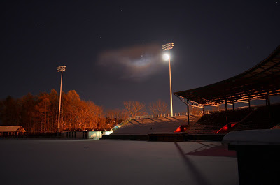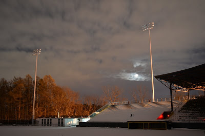 | Overlay of first photo, with another, taken Thursday morning at 12:06am, showing the moon roughly at the same height, but further south |