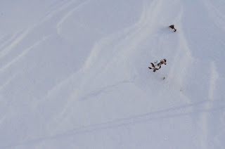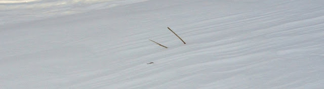 Jon commented on the lack of scale with snow. I think topography is one of the easier things to confuse my sense of scale. Looking at ripples in the sandy basin of a river I can easily imagine running across sand dunes. Looking down at a snowy aster poking up through the snow I was immediately transported out onto the vast open tundra.